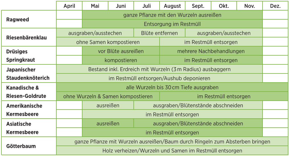 - Mehrjährige Kontrolle, da sich auch Samen im Boden befinden können.