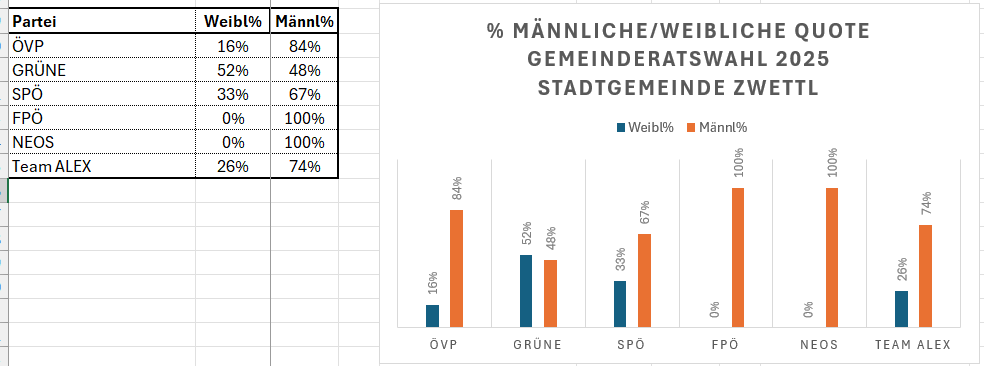 Quote aller Kandidatinnen und Kandidaten aller Parteien/Listen für die Gemeinderatswahl am 26.1.2025 in Zwettl/NÖ