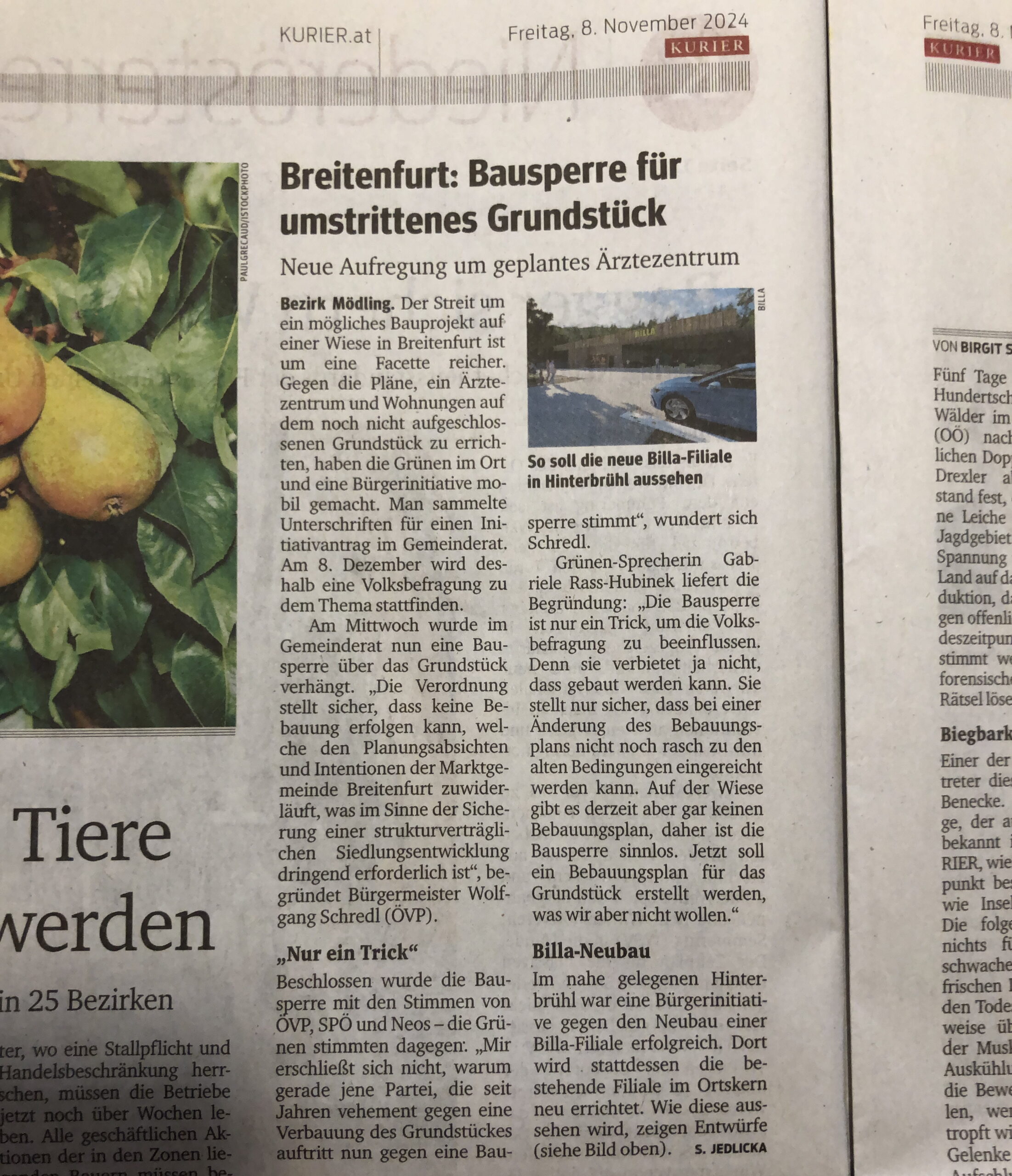 KURIER: Neues Ärztezentrum im Wienerwald? Widerstand in Breitenfurt
